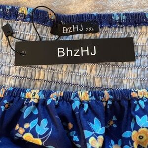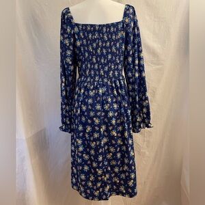 A-line Puff Sleeve Dress Blue Flowery Size XXL