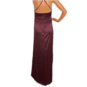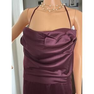 The product is a Chianti color long spaghetti bridesmaids dress in size 24. It is made of polyester and features a sleeveless style. The dress is personalized to the size and color specified, and it is manufactured in China. Ideal for formal occasions like weddings, this plus-size dress offers a traditional and elegant look for bridesmaids.