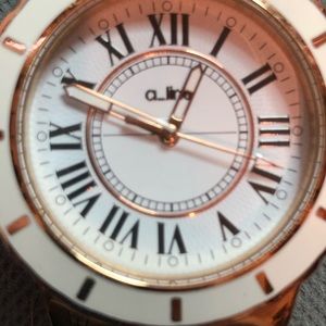 A_line Unisex AL-20015 Marina White Dial Gold Ion-Plated Stainless Steel Watch. Condition is "Pre-owned".