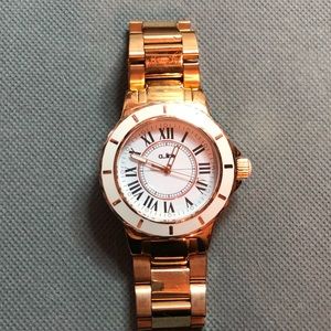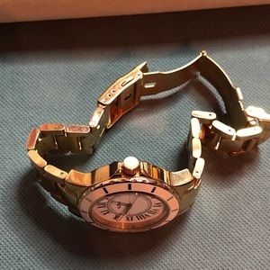 Mineral Crystal; Brushed and Polished Gold Ion-Plated Stainless Steel Case and Bracelet