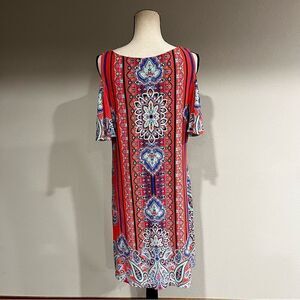A-line loose fit v-neck short sleeve cold shoulder paisley print dress
