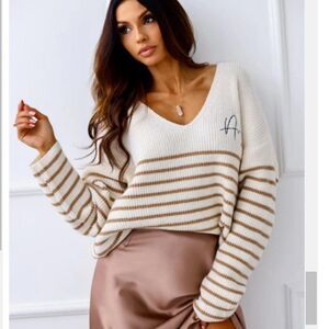 Alisa Striped 'AMOR' Knitted Sweater Top
