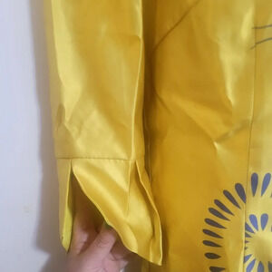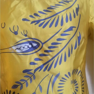 Gorgeous yellow satin dress w blue print makes all eyes be on you. From Alisa Style bust 37" waist 33" hip 42" length 40" no stretch. Check out my closet and bundle to save 💵 non smoking cat friendly home 😻. Bookmark my closet as new items added weekly 💖 offers always welcome 😊.