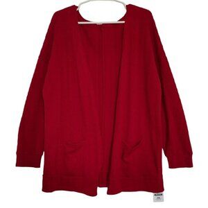 Alishebuy Women's Red Cardigan Sweater Long Sleeve Open Front Pockets, Size L.