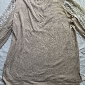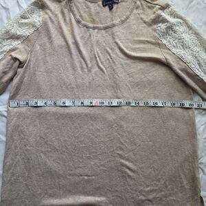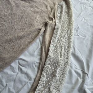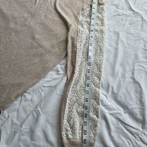 Alison Andrews soft beige knit body with decorative cream lace panels along the sleeves.