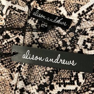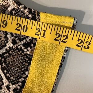 Alison Andrews snakeskin pattern sleeveless blouse with a yellow stripe detail. The shirt has a longer shirttail hem in the back.