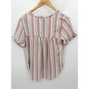 Alison Andrews Top Women SMALL Pink White Blue Striped Short Sleeve High Low
