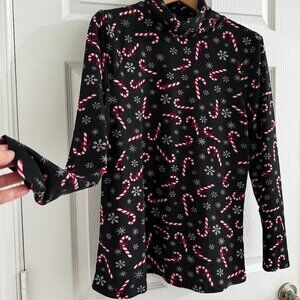 Long Sleeve, Stretch Polyester Blend, Christmas Candy Pattern.