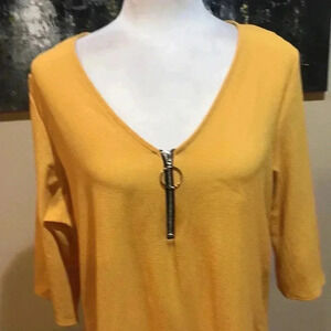 Alison Andrews Zipper Front Round Hem Tunic Top 3/4 Sleeves-XL