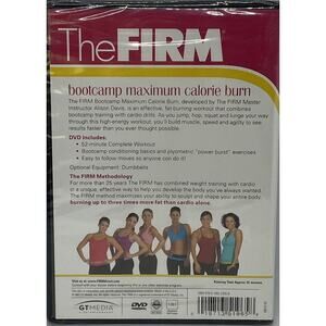 * "The Firm Bootcamp Maximum Calorie Burn, developed by the The FIRM Master Instructor Alison Davis, is an effective, fat-burning workout that combines bootcamp training with cardio drills. As you jump, hop, squat and lunge your way through this high-energy workout, you'll build muscle, speed and agility to see results faster than you every thought possible."