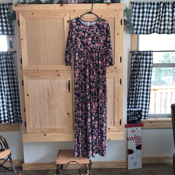 Alison Grace 3/4 sleeve floral modest pocket maxi dress size S