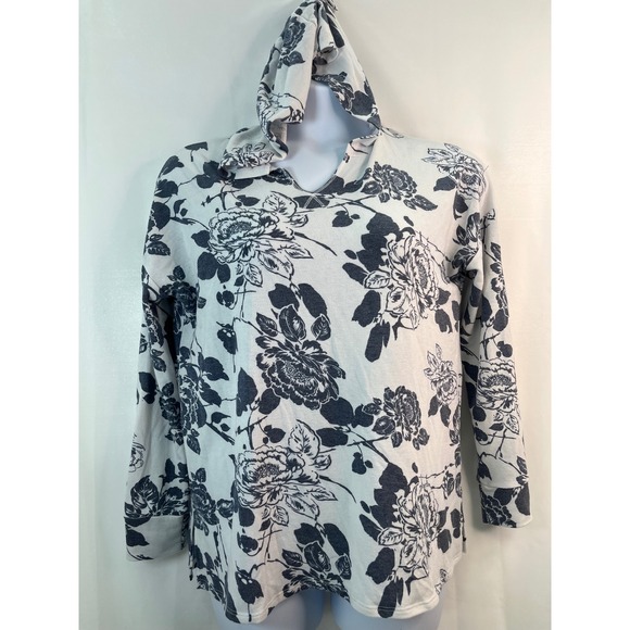 Alison Grace Women's L Floral Soft T Shirt Hoodie Pullover Peasant Beach Cottage