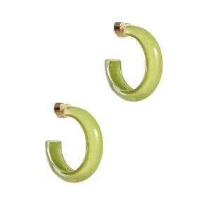 Alison Lou Lime Small Jelly Hoop Earrings 14k Gold Lucite Enamel Circle $125