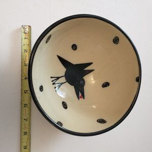Alison Palmer Pottery Whimsical Black Bird with Heart 7.5 Bowl Signed