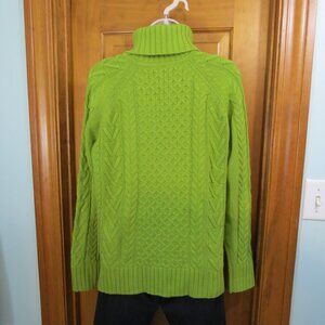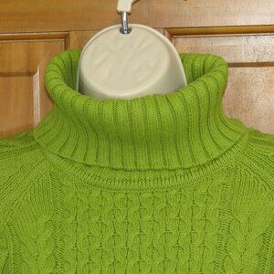 Alison Sheri Chartreuse Turtleneck Cotton Blend Chunky Cable Knit Size Small