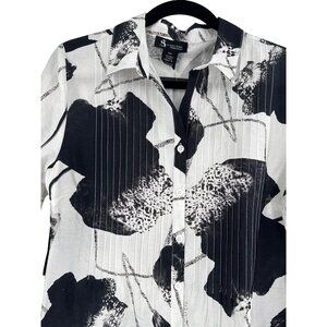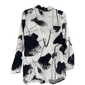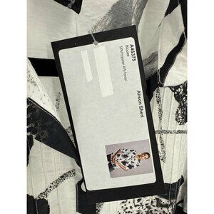 Alison Sheri Long Sleeve Button-Up Blouse S/P Black & White Abstract Print Polye