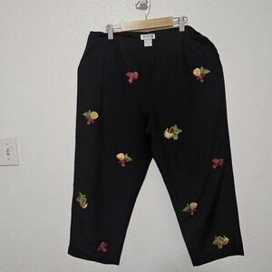 Alison Taylor silk blend embroidered fruits straight cropped pants size 12