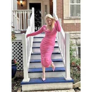 Aliétte Barbie Pink Ruched Draped Neckline Cowl Neck Gown Dress Size 10