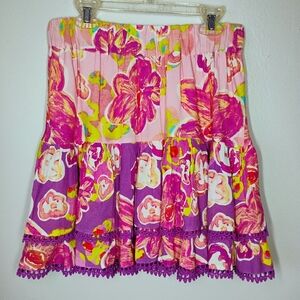 Alivia Annie Mini Skort Floral Sugar Plum Tiered Lace Trim Feminine Size Small