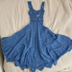 Alix Blue Crotchet Scoop Neck Maxi Dress