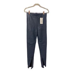 Alix NYC Carlisle Vegan Leather Pant High Rise Skinny Leg Split Hem Indigo Small