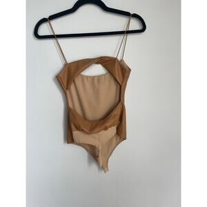 Alix NYC Faux Leather Bodysuit Women XS Cutout Spaghetti Strap Tan