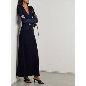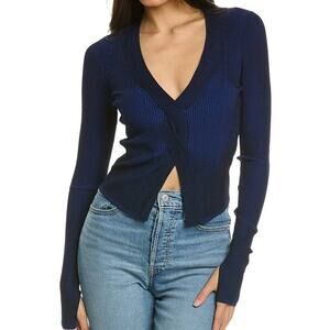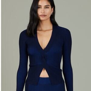 New Alix NYC Inez Twist Top Navy Blue Ribbed Long Sleeve Stretch V-Neck Sz XS