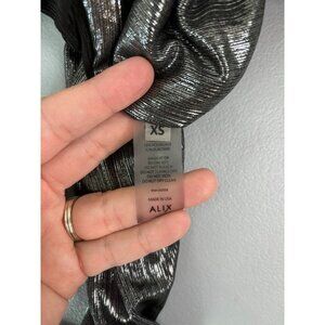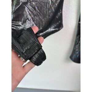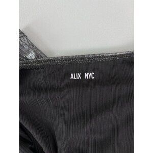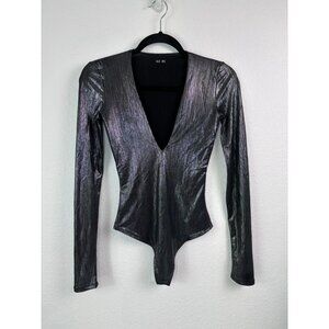 Alix NYC women's XS Irving Lamé Bodysuit sliver metallic plunge neck long sleeve