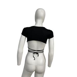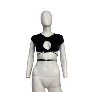 Alix Nyc 'Alston' Black Polyamide Crop Top Size S: bust cut-out, wrap around waist tie detail.