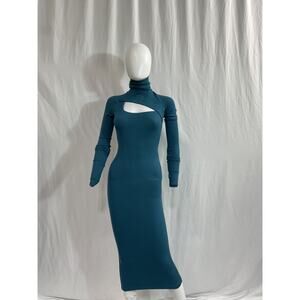 Alix Nyc 'Clarkson' Blue Turtleneck Front Cut Out Midi Dress Size XS