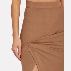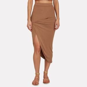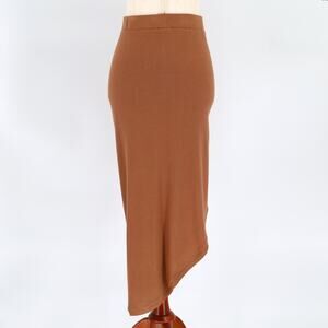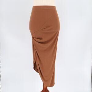 Alix Nyc Women Brown Rib Knit Modal Cortland Ruched Bodycon Midi Skirt Size M