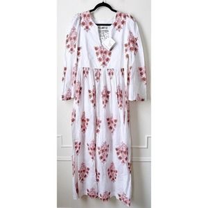 Chic long sleeve dress with vibrant floral accents. Flattering V-neckline. Ideal for stylish outings.