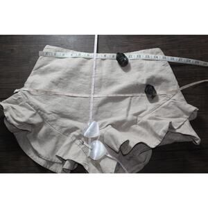 Alix Women's Ruffle Shorts Metallic Shimmer Linen Blend Silk Size US 10, in good pre-owned condition: no holes, no stains, moderate wear, has been recently cleaned, may be stale from storage. Marked as a women's US 10, measurements are taken while laying flat and are approximate: (see photos)