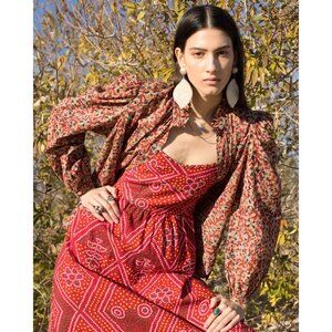 Alix of Bohemia Autumn Scarlett Bandani Dress XL Red Cotton Boho Maxi