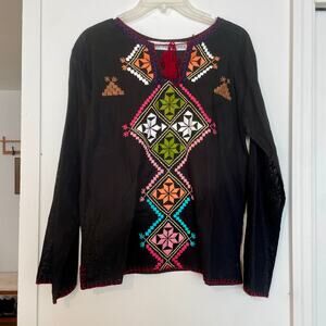 Alix of Bohemia Black Embroidered Tunic Top Blouse Native Western Southwest