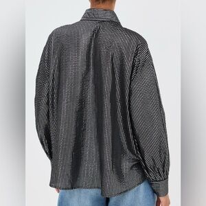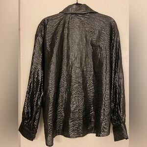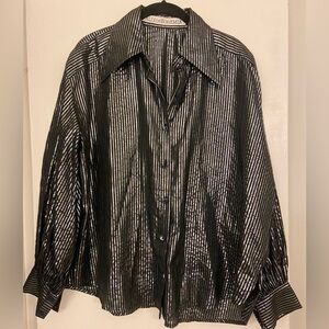 Alix of Bohemia Emery Moonlight Long Sleeve Silver Metallic Stripe Blouse Size Small.