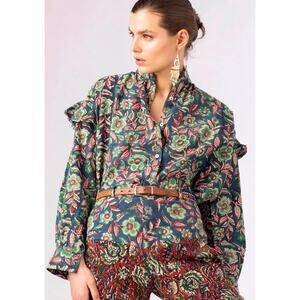 Alix of Bohemia Freya Flower Ruffle Cotton Floral Long Sleeve Blouse