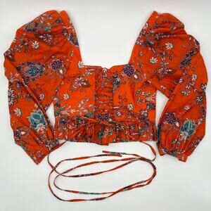 Alix of Bohemia | Lila Orange Botanical Peplum Top XS