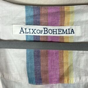 This one-of-a-kind textile was woven by hand. Subtle variations are part of the unique beauty of the garment and a signature of the artisan’s hand.