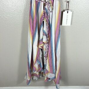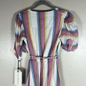 Rendered in woven cotton, our striped wrap dress has a ruffle-trimmed skirt. Fully lined, the dress is fastened with braided ties. Dress it up or down with a change of footwear.