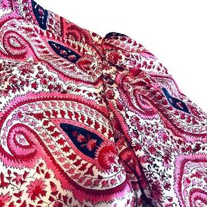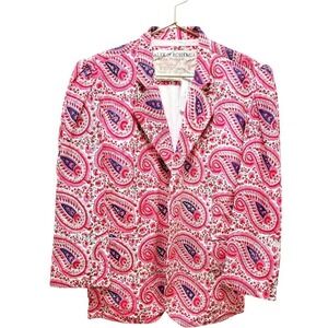 Bohemian, Vintage-Inspired, Contemporary Fashion, Artisanal Core, Luxury Core, Blazer, High-End, Women's Jacket, Paisley Pattern, Puff Sleeve, Large, Alix of Bohemia, Rasha Style, New With Tags, Fashion, Outerwear, Designer, Trendy, Elegant, Bold Print, Contemporary, Casual-Chic, Sophisticated, Paisley, light jacket, artisinal, pink, puff sleeves, autumn, bright, colorful, fun, boho ,sustainable