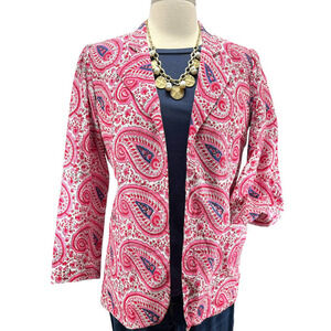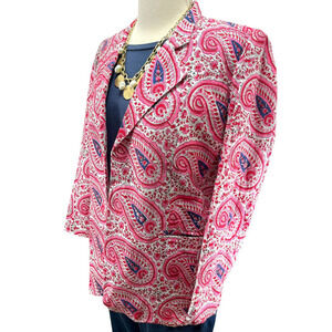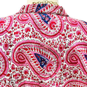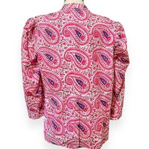 Bohemian, Vintage-Inspired, Contemporary Fashion, Artisanal Core, Luxury Core, Blazer, High-End, Women's Jacket, Paisley Pattern, Puff Sleeve, Medium, Alix of Bohemia, Rasha Style, New With Tags, Fashion, Outerwear, Designer, Trendy, Elegant, Bold Print, Contemporary, Casual-Chic, Sophisticated, Paisley, light jacket, artisinal, pink, puff sleeves, autumn, bright, colorful, fun, boho