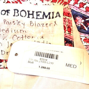 Alix of Bohemia NWT Rasha Medium Blazer - Paisley Puff Sleeve Women's Jacket Med