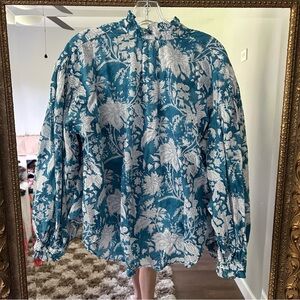 Alix of Bohemia Poet blouse turquoise floral block print ruffle collar