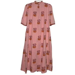 Alix of Bohemia Remi Peony Midi Dress Pink Hand Block Print Cotton Size Large