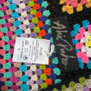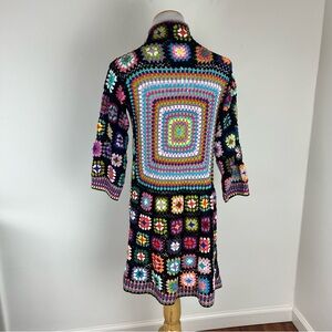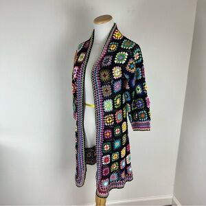 Alix pinho Crochet Cardigan Sweater Size S Black Granny Squares