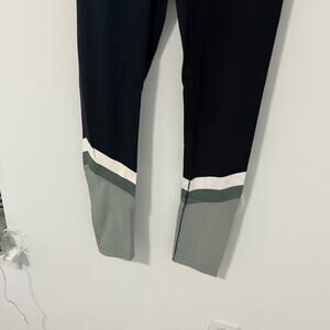 All Access Black & Green Color Block Leggings Size Small. Excellent condition, like new. Black with green & white color block detail on lower leg. Wide, flat waistband. Ankle length cropped leggings. Moisture wicking technical workout material. Sold on Bandier.