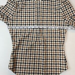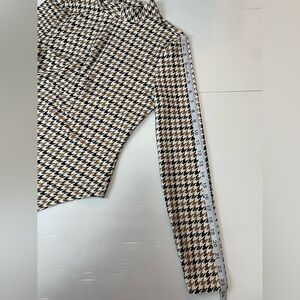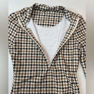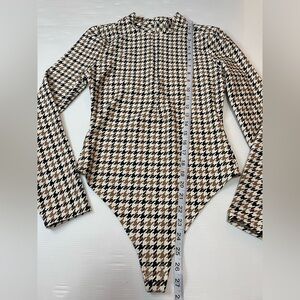 All Access Quarter-Zip Bodysuit Houndstooth Print Black Tan Cream Size M