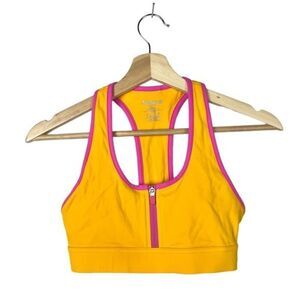 All Access Zip Front Athletic Sports Bra Escape Orange & Digital Pink XS