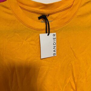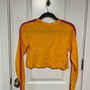NEW WITH TAGS All Access x Bandier long sleeve crop top, size small in "Escape Orange" and "Digital Pink" (golden-yellow and hot pink stripes). 60% pima cotton 40% micro modal, super soft!
